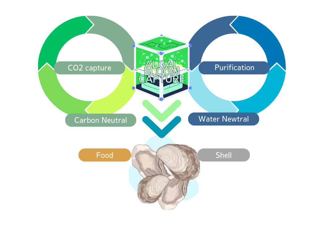 藻類ブルームの活用により、カーボンニュートラル、食糧生産、そしてCO2の隔離を可能にします。